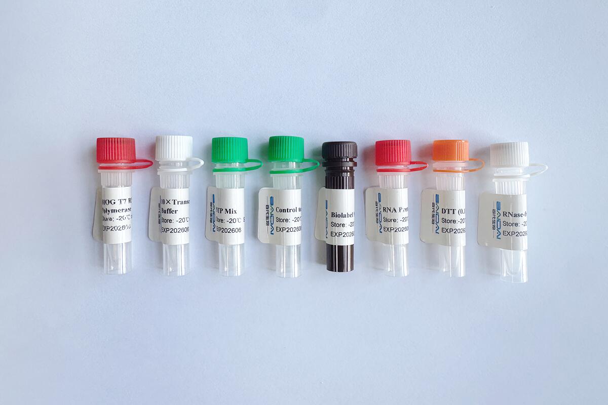 BIOG 生物素标记RNA探针合成试剂盒是由百代生物海归团队研发的一款用于高效制备生物素标记RNA 探针的试剂盒。本试剂盒采用百代生物自主研发的基因工程改造的高活性T7 RNA聚合酶,具有较强的DNA模板亲和性,单次反应可制备6-10μg RNA高活性探针。试剂盒配置的Biotin-16-UTP,较Biotin-11-UTP能够更加高效地掺入合成的RNA探针,配合反复优化过的反应体系,可最大化地对RNA探针进行生物素标记,使合成的 RNA 探针具备超高的检测灵敏度,可广泛应用于 RNA Pull-down、Northern Blot、原位杂交及 RNA 酶保护实验等 RNA 功能和定位研究。