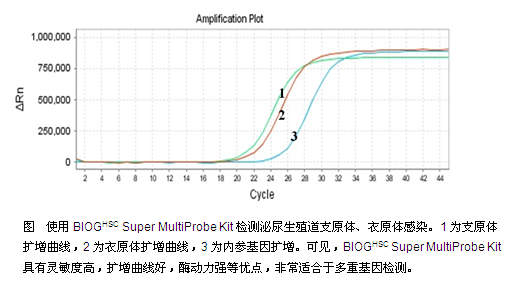 BIOGHSCSuper MultiProbe Kit采用本公司生产的经化学修饰的热启动聚合酶,有效避免了非特异扩增,具有高度的特异性。反应缓冲液经多次优化,与热启动聚合酶具有乐观的搭配,使聚合酶的活性能够得到很大程度的发挥。反应灵敏快速,40个循环只需20多分钟的时间。在20µl的反应体系里,只要有几个拷贝的DNA分子就能被检测出来。BIOGHSCSuper MultiProbe Kit具有非常强的抗干扰能力,能够对土壤、粪便、肿瘤和血液来源的复杂样本中的靶基因进行检测分析。本产品适合探针法定量PCR检测,试剂以预混液的形式包装,使用极其方便。
