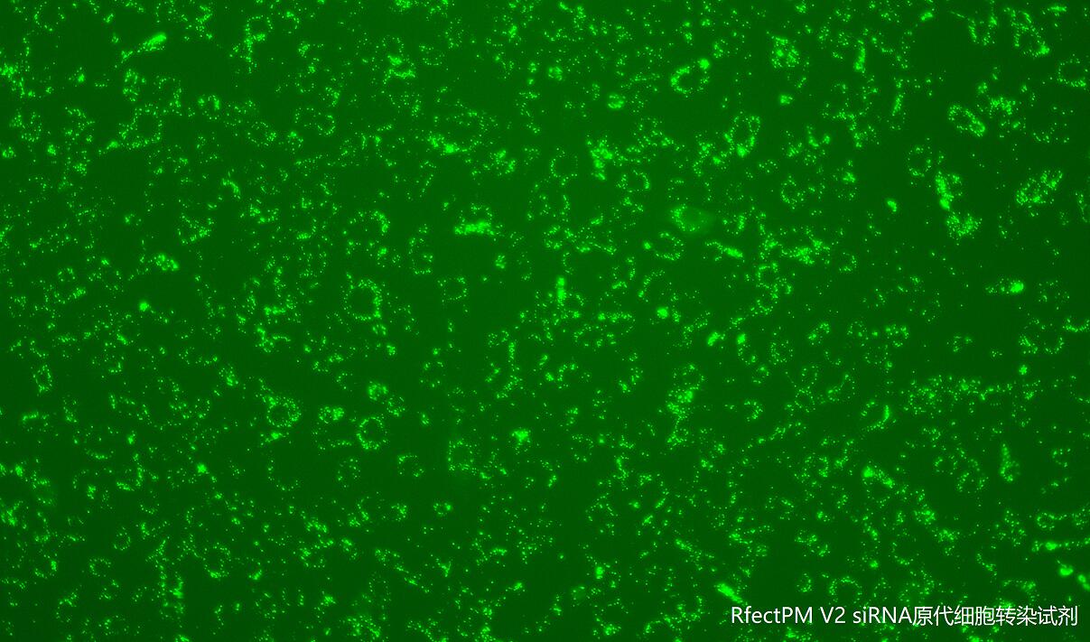 RfectPM V2 siRNA转染试剂是RfectPM原代细胞小核酸转染试剂的升级产品。与RfectPM原代细胞小核酸转染试剂相比,RfectPM V2 siRNA转染试剂盒配置有siRNA转染增强剂,可有效降低细胞膜的免疫排异反应,显著提升siRNA转染的效率。RfectPM V2 siRNA转染试剂具有更高的siRNA转染效率,部分原代细胞的siRNA转染阳性率可高达90%以上,比RfectPM原代细胞小核酸转染试剂高5-30%。 RfectPM V2可用来转染siRNA、miRNA mimics、miRNA inhibitor等200bp以内的小分子RNA,可转染绝大多数原代细胞。RfectPM V2能够高效转染绝大多数原代细胞,获得比较理想的基因敲除效果。甚至对一些活体寄生虫幼虫,RfectPM V2也能获得较为理想的转染结果。RfectPM V2采用新型可降解纳米材料,细胞毒性很低,转染细胞死亡率只有5%左右。血清对RfectPM V2的转染效果没有影响,不必使用特殊的低血清培养基,也不必在转染4-6小时后更换培养液,使研究者的操作更加方便。本产品适用于原代细胞转染,悬浮细胞请选择使用Rfectsp V2 siRNA悬浮细胞转染试剂。