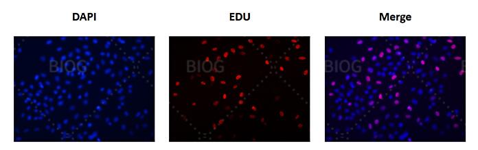 图1. 使用BIOG EdU细胞增殖检测试剂盒检测Hela细胞增殖情况。