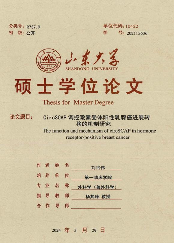 相关文献:CircSCAP调控激素受体阳性乳腺癌进展转移的机制研究